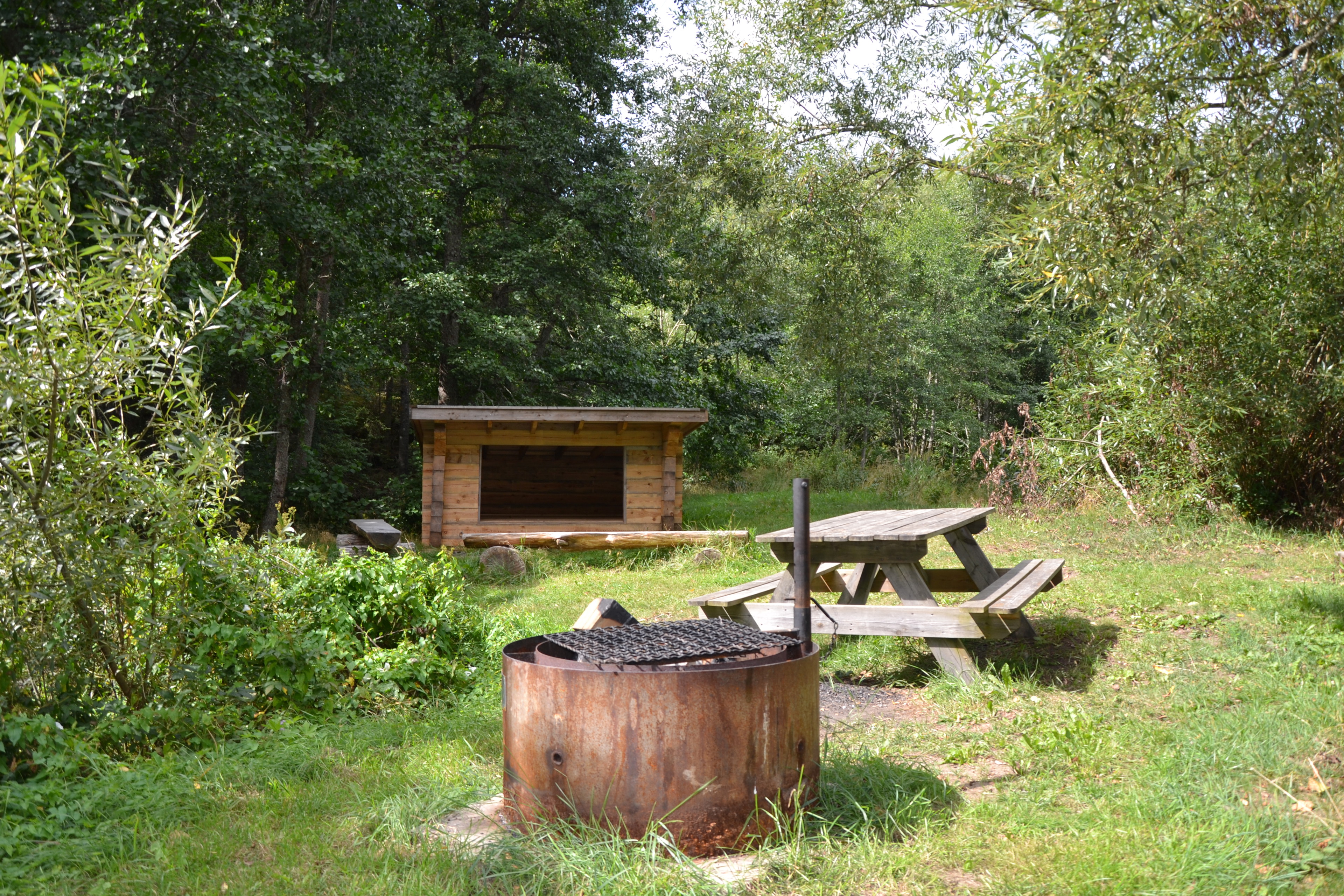 Här finns flera bänkar och bord, ett vindskydd samt eldstad med höj- och sänkbart grillgaller. Den gröna ytan är en bra plats att tälta på.