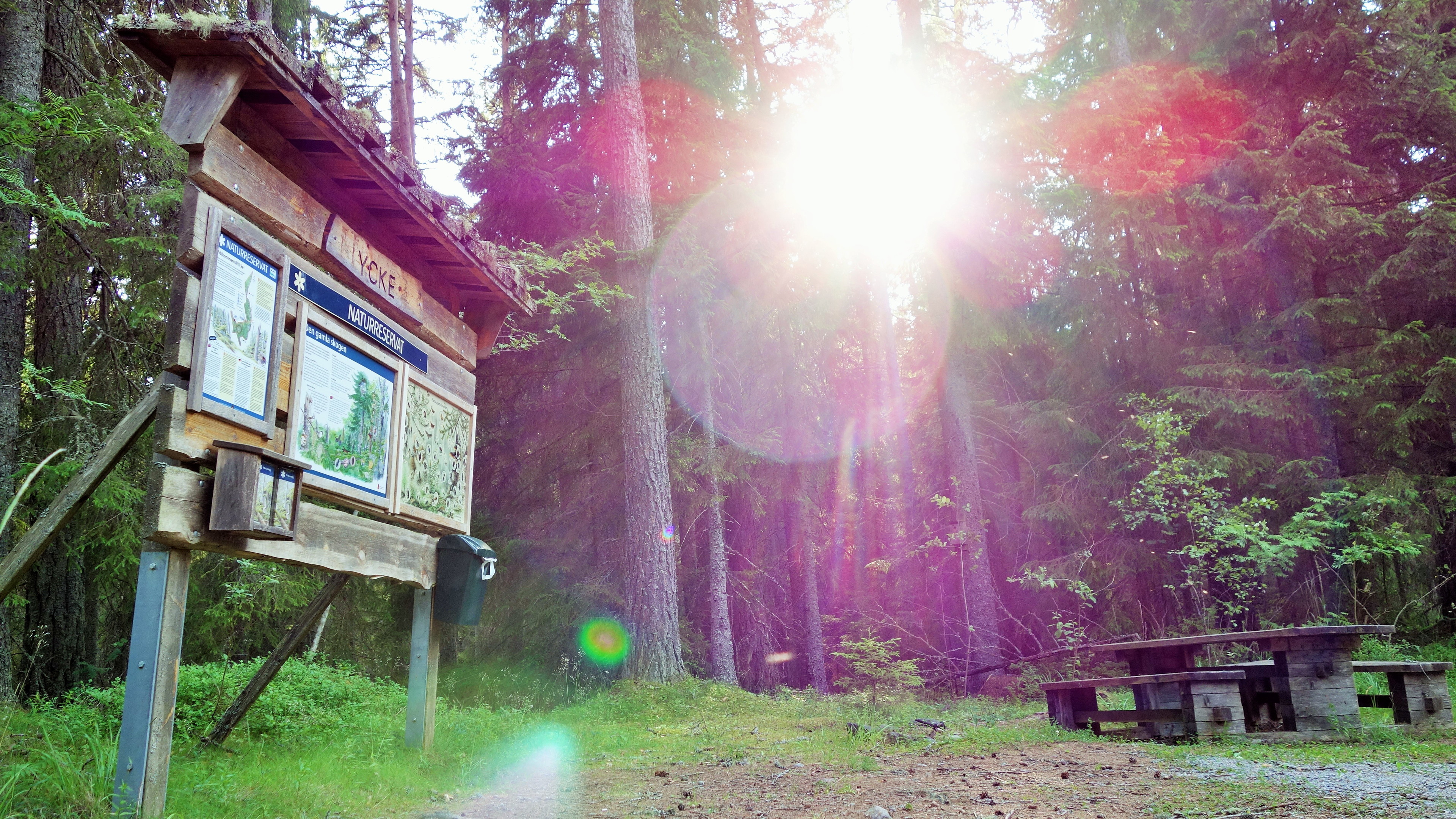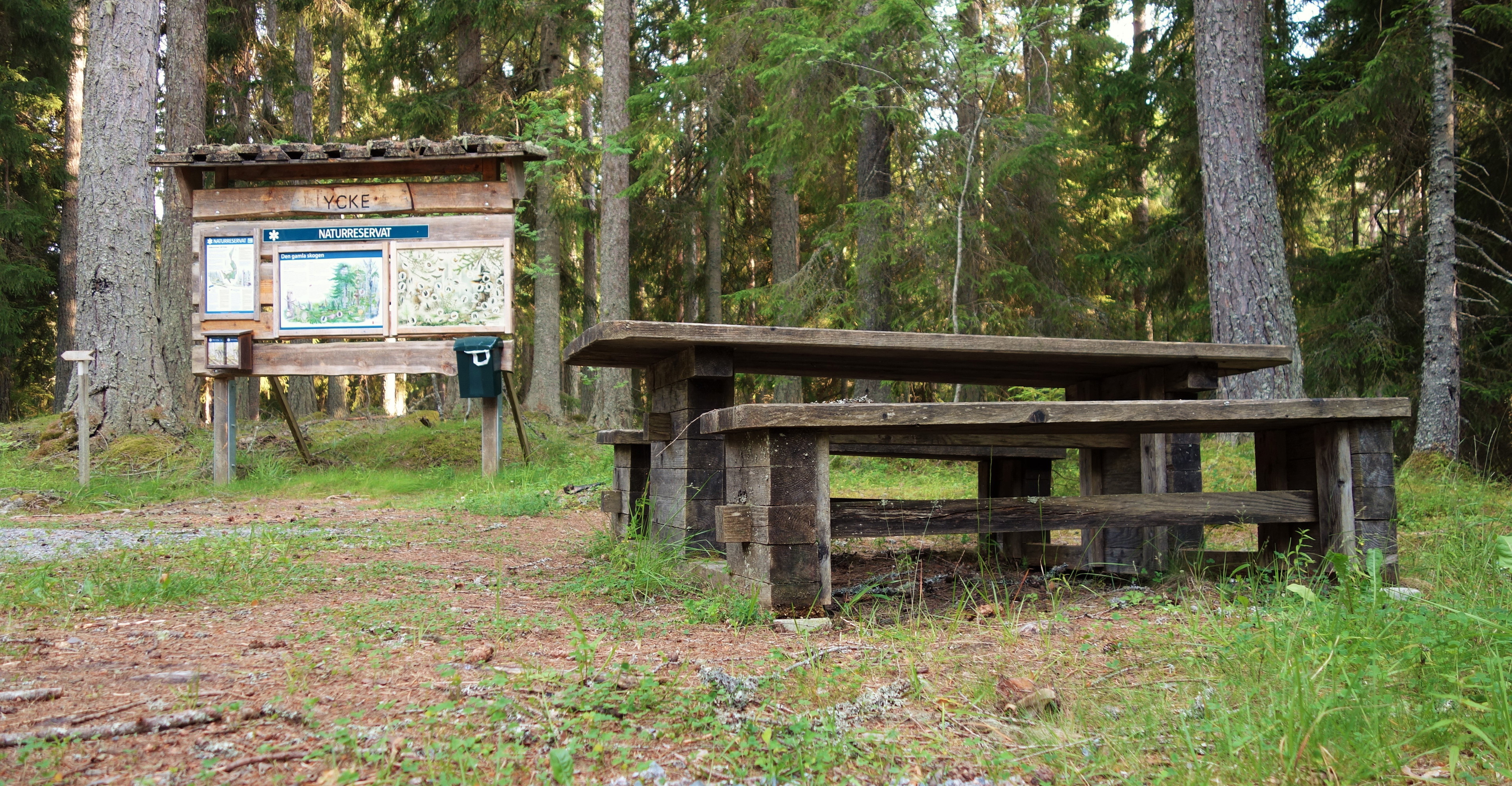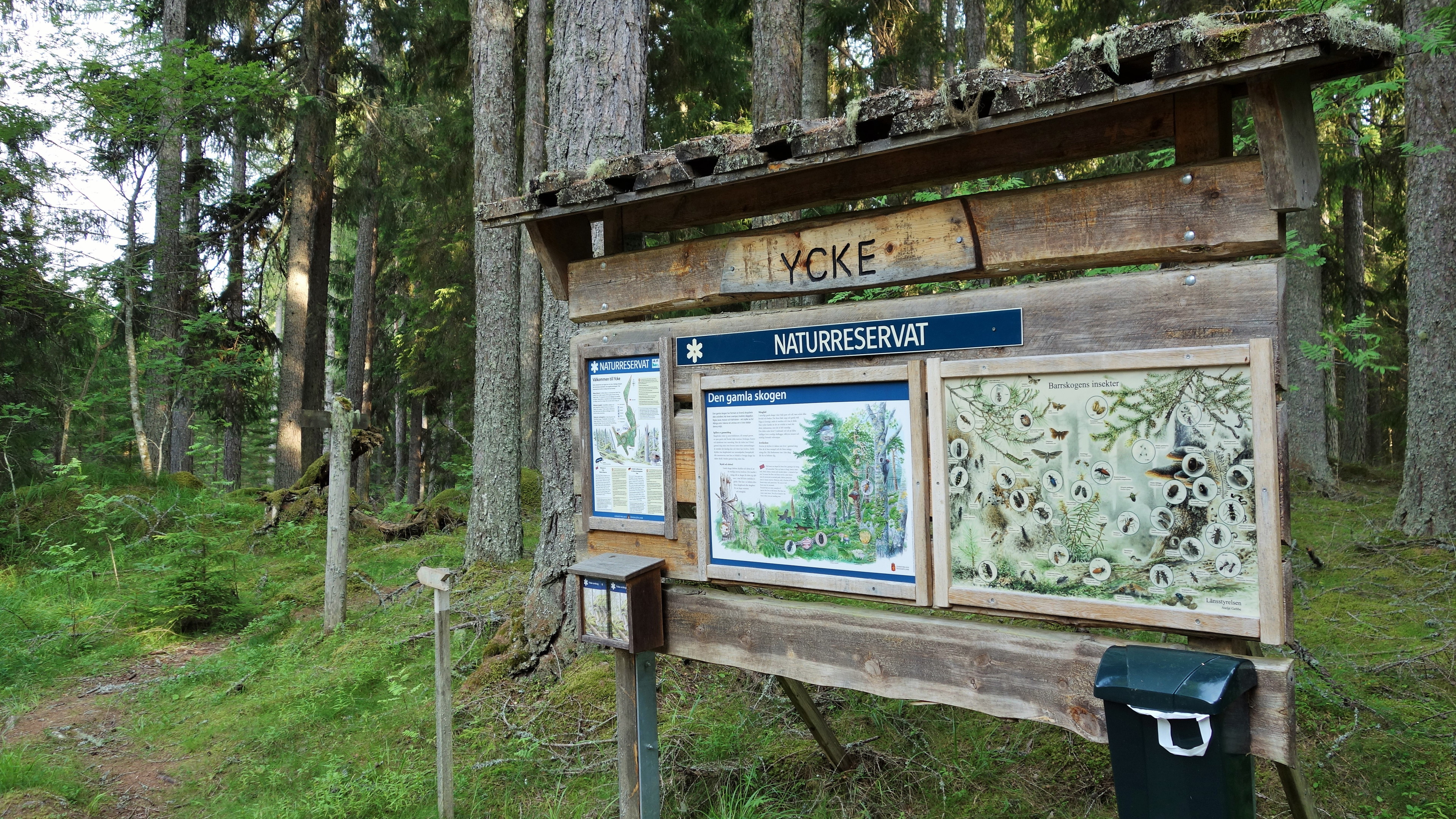 Välkommen till Ycke urskog. Vid den västra entrén finns p-plats, information om naturreservatet och en rastplats med bänkbord. Entrén är en bra utgångspunkt för upptäcksfärder i naturreservatet, exempelvis längs Ycke urskogsled som utgår härifrån.