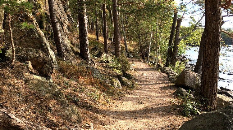 Leden går genom variationsrik natur, allt från öppna fält, olika typer av skogsmark och utsikt över …